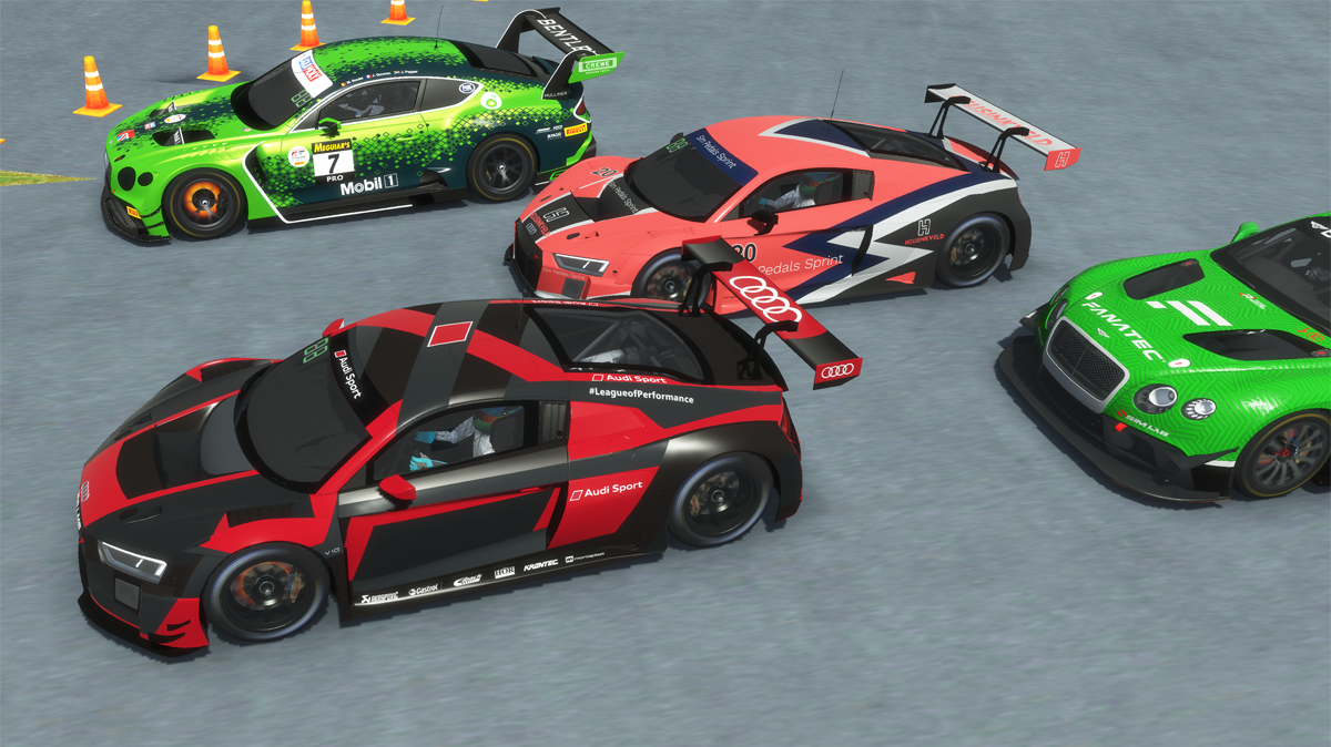 We are using the world-class GT3 Car Pack in the rFactor 2 racing simulation software for PC, available on the Steam software portal.