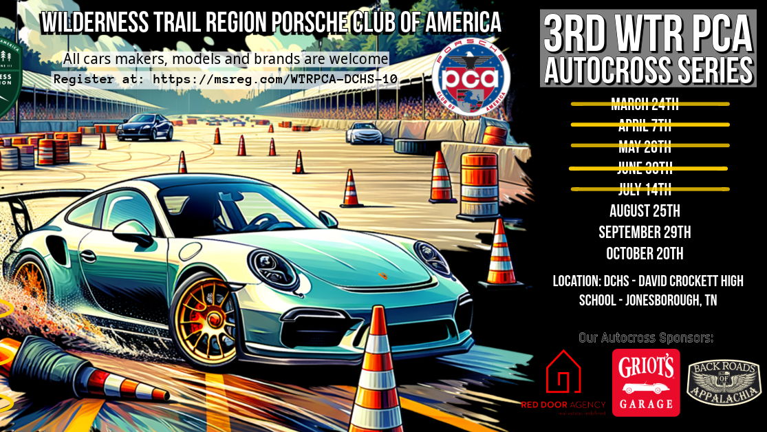 The event is hosted and presented by the Wilderness Trail Region Porsche Club of America and sponsored by Red Door Agency, Griot's Garage and Backroads of Appalachia.