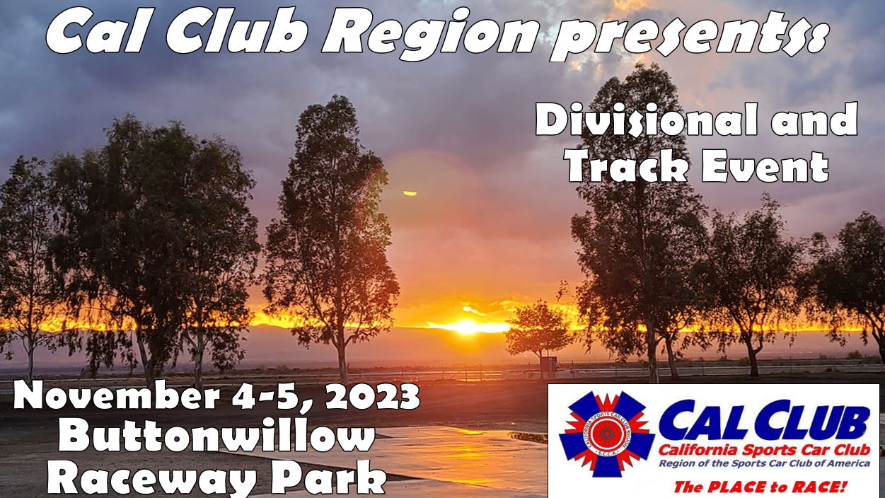 EVENT SCHEDULE AND SUPPLEMENTARY REGULATIONS:2023 November Cal Club Supp Regs (Non Super Tour Event) - November Divisional - Track Event - Buttonwillow - rev 7-24-23.pdf