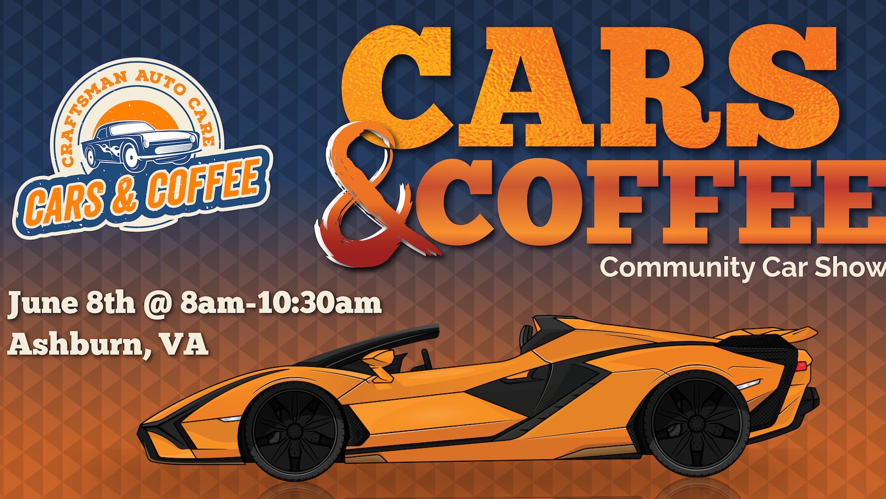Join us and feast your eyes on an incredible car showcase! FREE Coffee & Pastries Prizes for Top Cars in Judged Categories Giveaways throughout show Register online or at the door! $15 Vehicle Registration Donation is required to enter the car show and includes a limited edition C&C T-shirt while supplies last. Contact: info@craftsmanautocare.com *All proceeds will be donated to The Car Ministry to help those in need or reliable transportation.