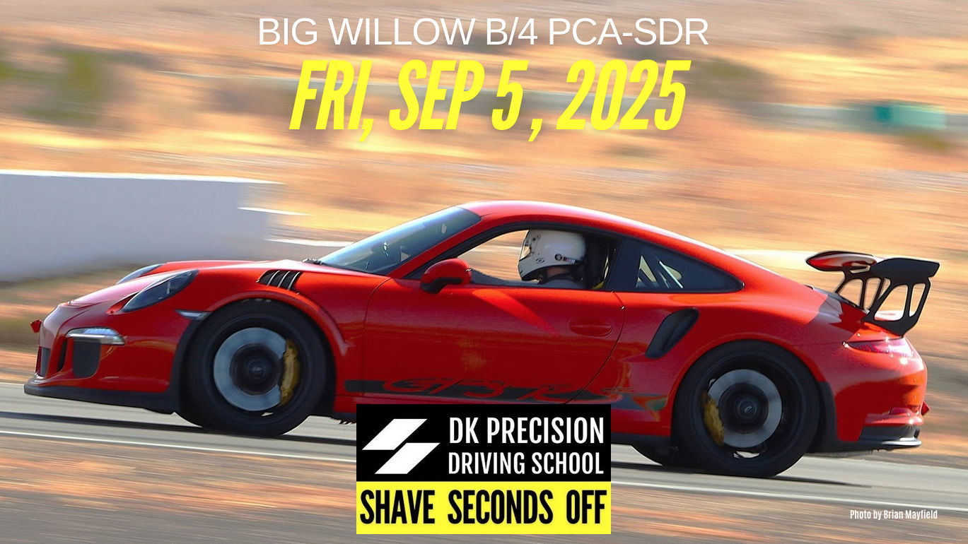 Tuesday, September 2nd, 2025, at 6 PM PST, we will have a MANDATORY Virtual Meeting via Zoom to discuss logistics and what to do and expect when you arrive. The Goal of DK Precision Driving School is to groom drivers to be better and faster drivers, acquire new skills, learn with real time feedback and share in the camaraderie with fellow drivers. No one leaves without a big grin on their face! At 5:30 the Women will meet on Zoom before the Coed Zoom.