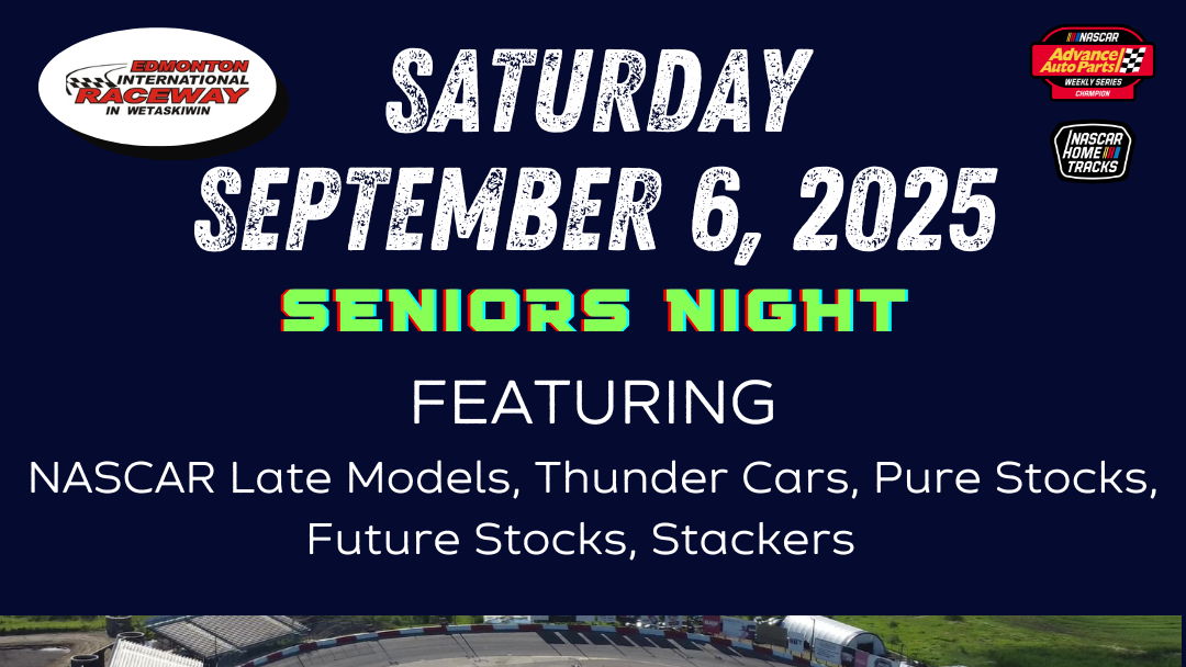 FEATURING: SENIORS' Night - If you are a Senior you are admitted for Free - no need to register online, just show up! Racing includes NASCAR Late Models, Thunder Cars, Pure Stocks, Future Stocks & Stackers