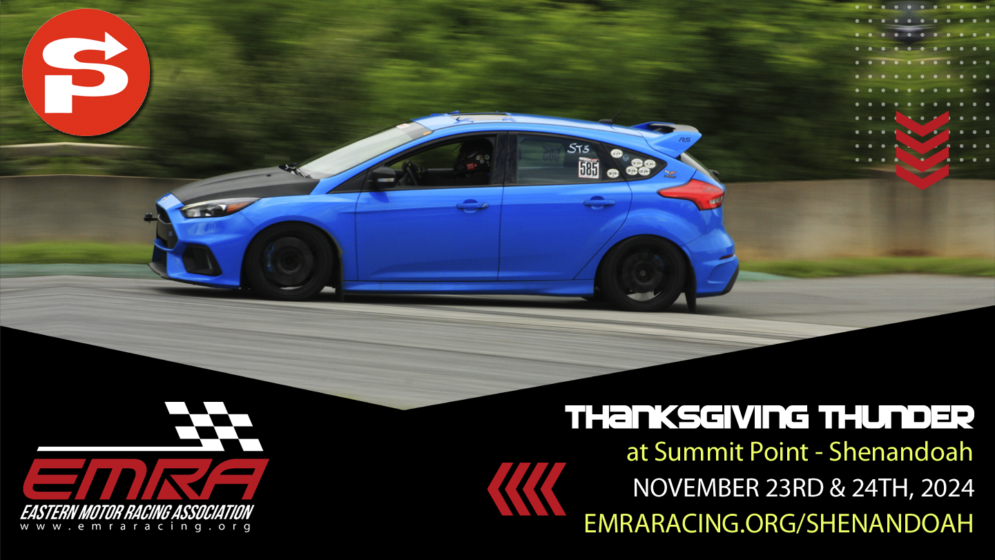 EMRA Racing is excited to announce our Thanksgiving Thunder event, taking place on November 23rd & November 24th, 2024 at Summit Point Shenandoah Circuit!