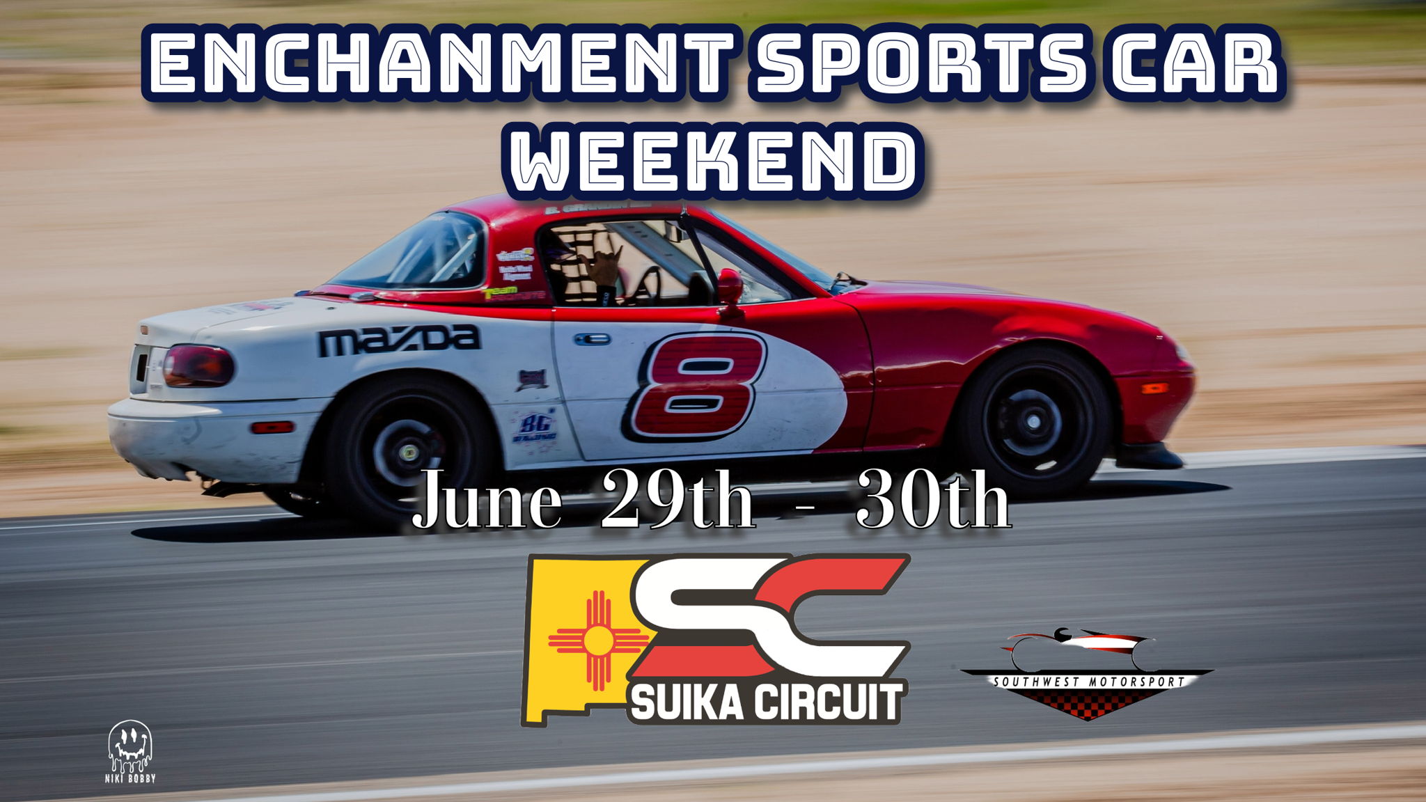 You're invited to the SWMS 2024 season! This event includes Spec Miata, Vintage sports car racing, Legends car racing, Kart racing, High-Performance Driving Experience (HPDE) events, and High-Performance Driving School (HPDS) events hosted by New Mexico's premier sports car race club (SWMS). This is a two-day event. Drivers, please head to motorsportreg.com to sign up and Spectators can purchase that at https://www.suikacircuit.com