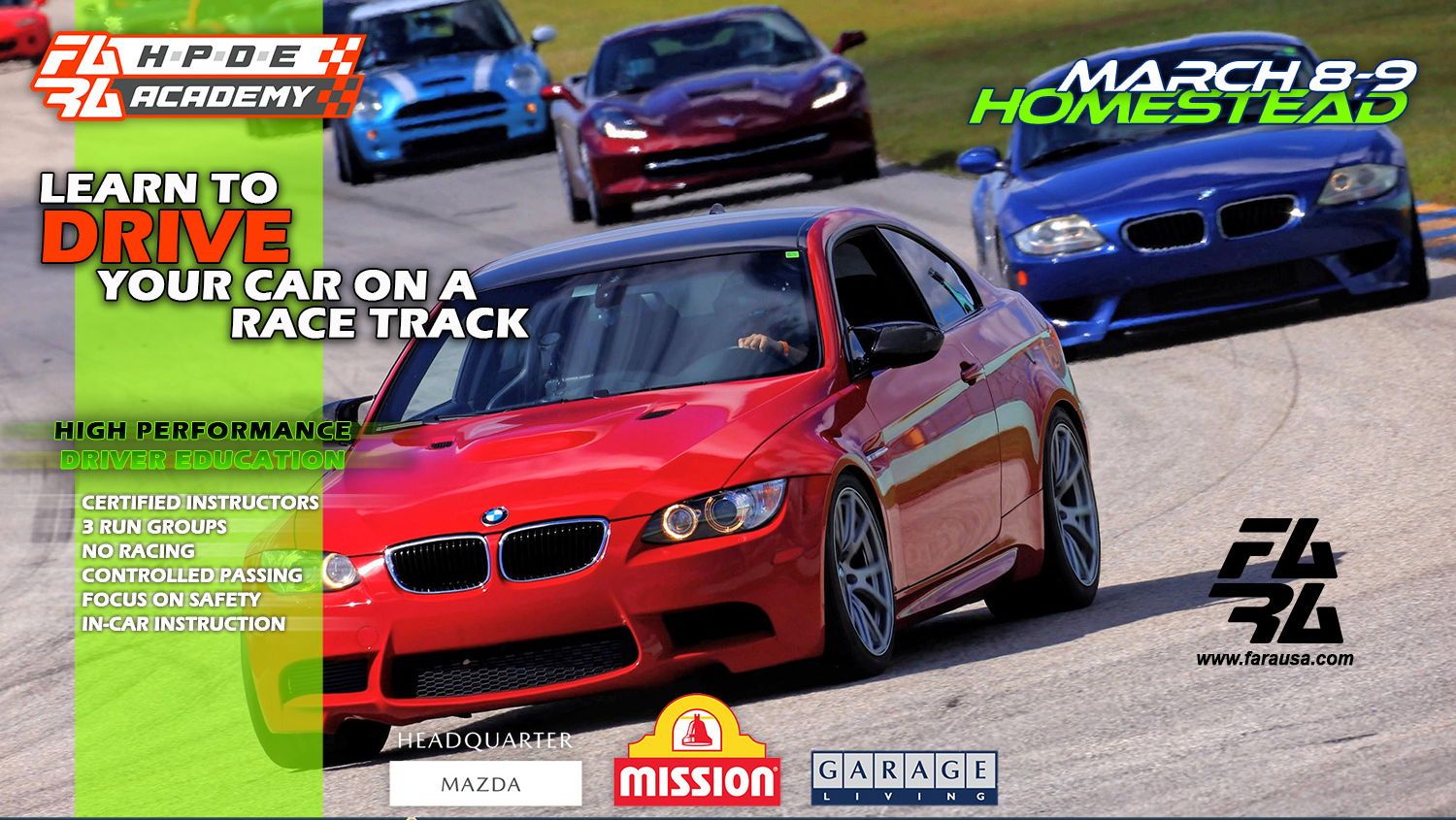 Whether you're eager to learn the fundamentals or fine-tune your skills to shave precious tenths off your lap times, the FARA HPDE Academy is where it's at! Our academy offers an unparalleled experience, featuring certified instructors, professional driving techniques, track walks, advanced one-on-one coaching, and much more.