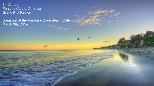 Please join the Grand Prix Region of the Porsche Club of America for Breakfast at the Paradise Cove Beach Cafe