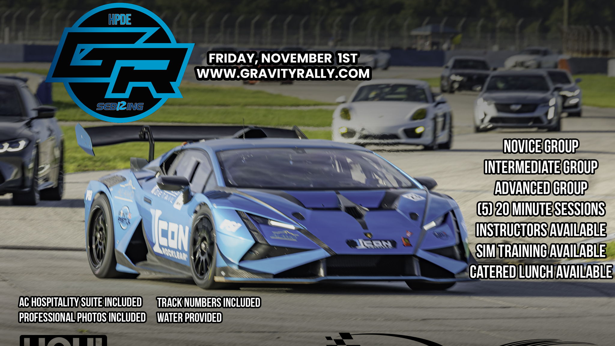 Join Gravity Rally Friday, November 1st for our Gravity Rally's Private Track Day event! This event will focus on creating the ultimate track experience with 5 (20) minute sessions, open session, and parade laps.