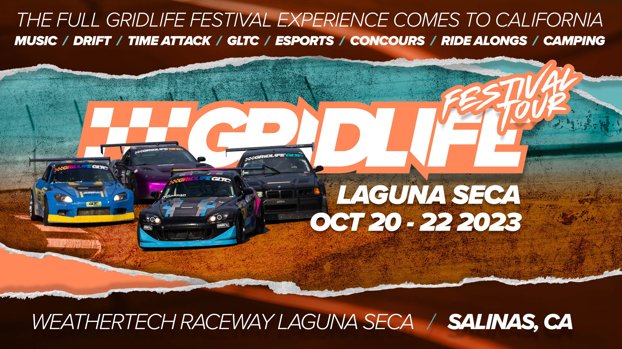 From its roots in the American Midwest, GRIDLIFE’s Festival experience is now truly coast to coast with its first visit to WeatherTech Raceway Laguna Seca October 20-22, 2023. GRIDLIFE Laguna is the final festival of the season, with the last races of the year for GRIDLIFE Touring Cup, the final round of the NOS Energy TrackBattle Time Attack, and demonstrative drift on track. Off track, a music festival experience highlights the weekend, with an arcade, camping, concours, food vendors, and so much more.