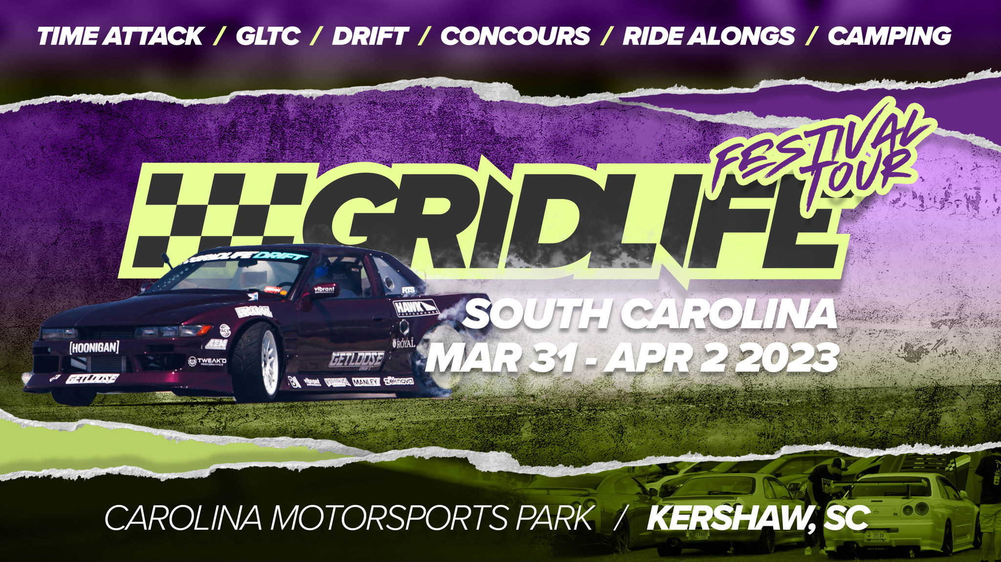 The 2023 GRIDLIFE Festival Tour kicks off with a return to the South at the beautiful Carolina Motorsports Park, March 31 - April 2. A full weekend of motorsports action featuring TrackBattle Time Attack, GRIDLIFE Touring Cup (GLTC), Full Course Drifting, Taxi Ride Alongs and more. Sunday includes a track-day experience with single session events so anyone can experience the thrills of driving on track.