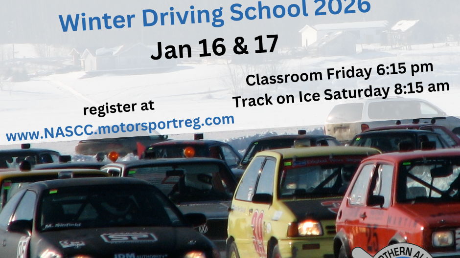 NASCC Winter Driving and Ice Race School - Classroom- 6:15 pm Friday evening January 16th & On Ice 8:20 - 4 pm January 17th, 2026