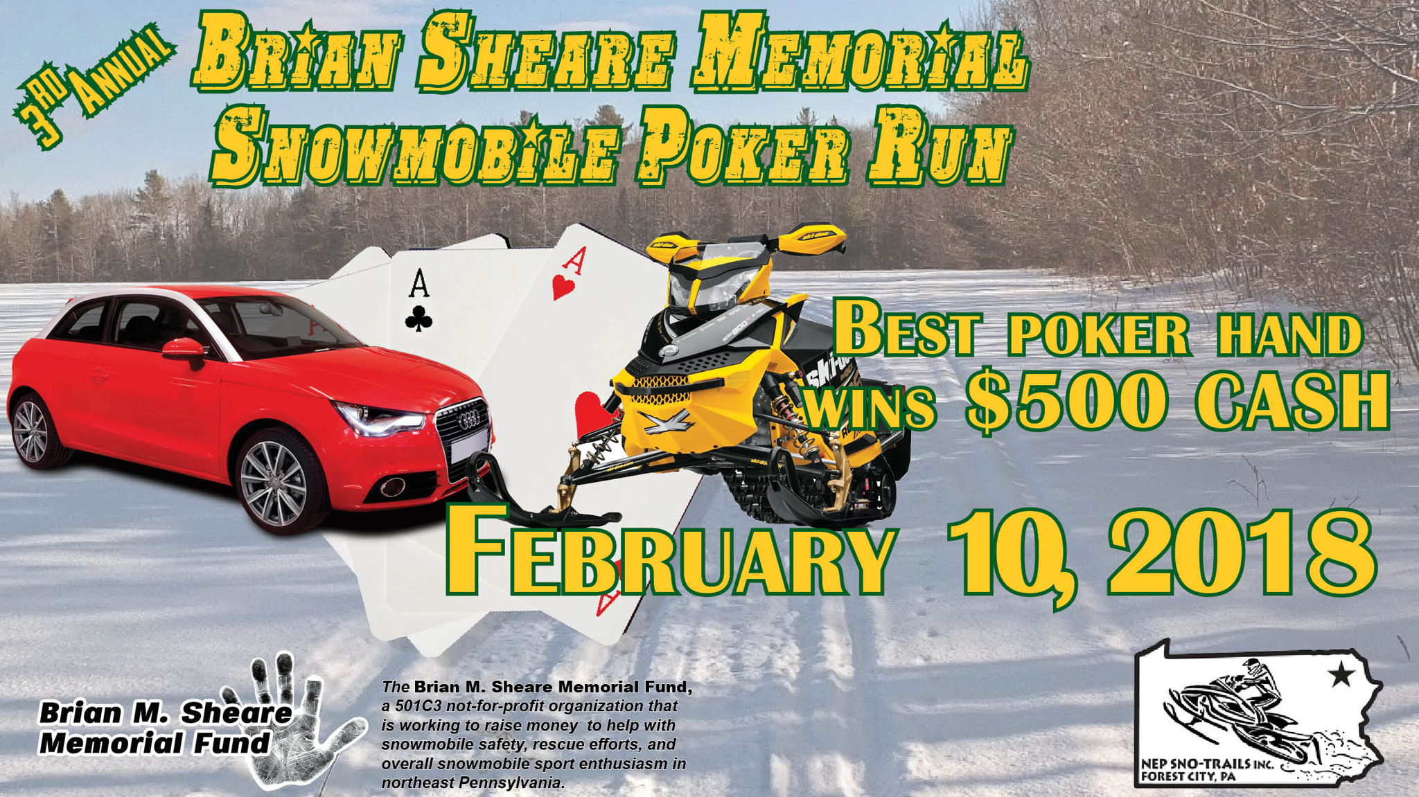 A Snowmobile Poker Run In Memory of an amazing man, Brian M. Sheare, has been set for Saturday, February 10th, 2018.