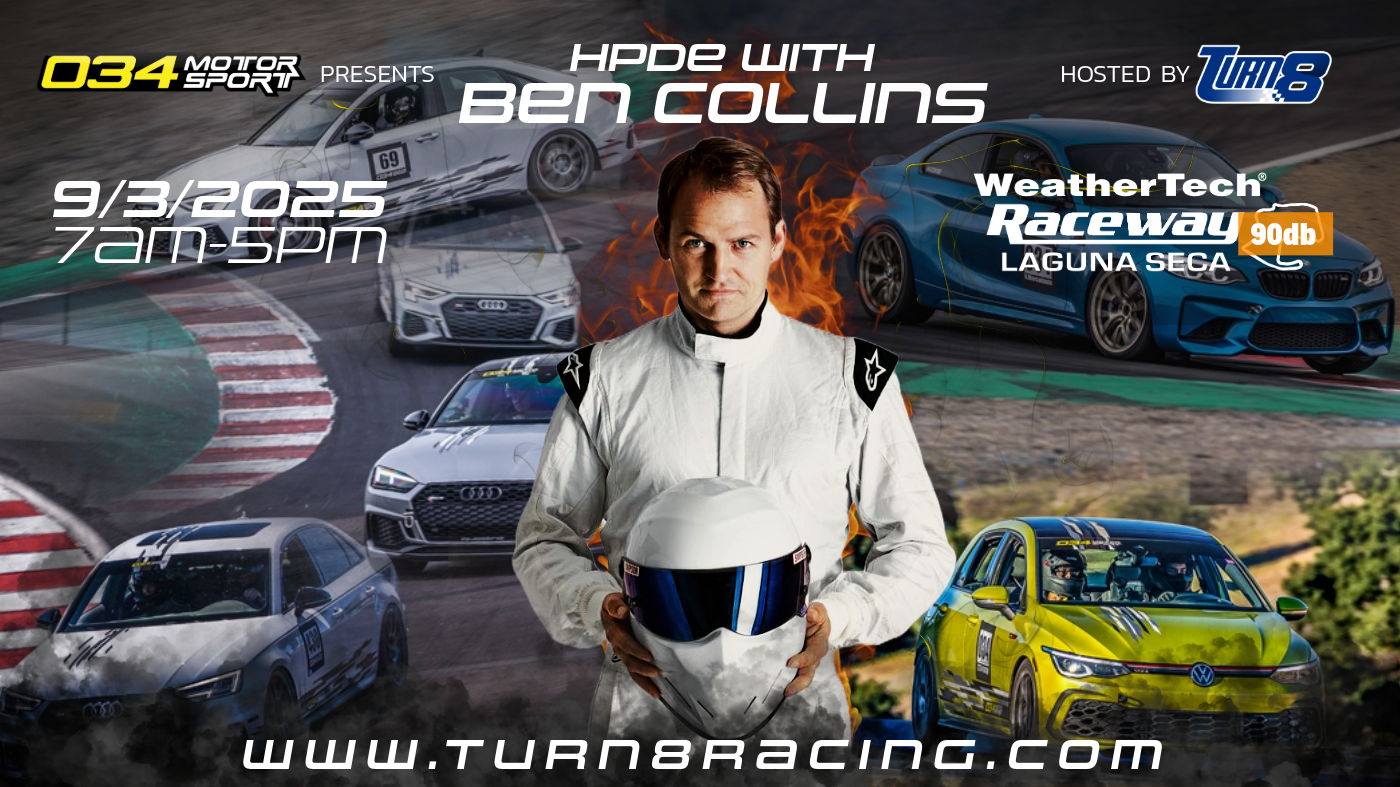 There will be no beginner run group at this event. All drivers must have at least 5 prior track days or receive pre-approval from Turn8.