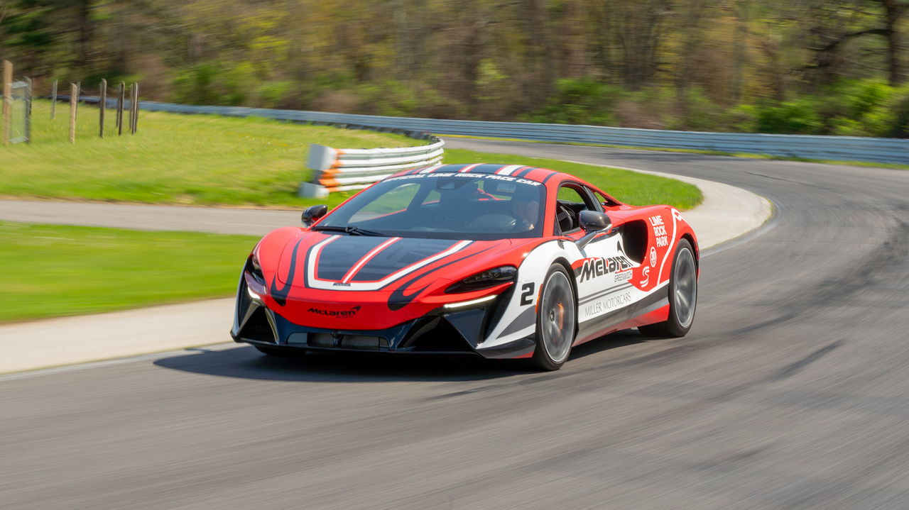 After you are done driving you will get to ride passenger with one of our instructors driving a 700+ Horspower Aston Martin DBX707 or the brand new McLaren Artura pace car provided by Miller Motorcars of Greenwich! Triple digit speeds are highly likely! Helmets must be worn during this portion of the program and will be provided.