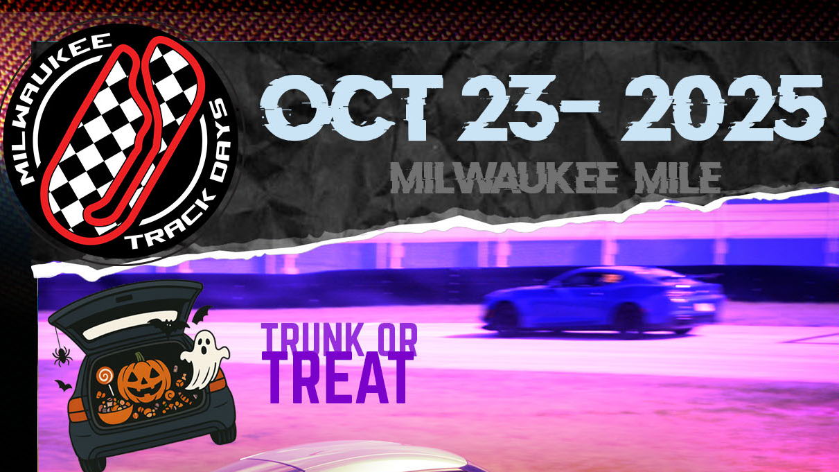 THURSDAY Oct 23, 2025 Milwaukee Region Track Day Milwaukee Mile - Road Course 12PM -ONSITE REGISTRATION 1:30PM MANDATORY DRIVERS MEETING 2:00PM TRACK GOES HOT 5:45 PM - 6:30 PM Clean-up / Debriefing
