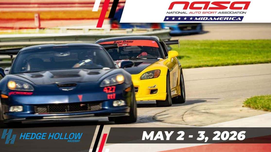 NASA's famous HPDE 1 thru 4 program. HPDE 1 includes an instructor at no additional charge. We have a blast at our events. Come see why we are voted "Missouri's Best" for 2025 and 2026.