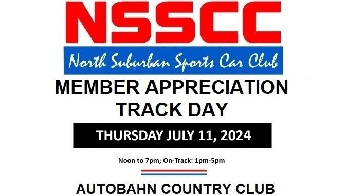 North Suburban Sports Car Club will be holding our second Member Appreciation Track Day on the afternoon of Thursday, July 11, 2024. This subsidized and limited event will only be open to members of NSSCC, Midwestern Council, and guests that already have experience on a race track and running RAIN OR SHINE. While all members are welcome, unfortunately we will not be allowing beginners on track as the event is open to a wide range of cars (open and closed-wheel race cars as well as street cars). Instructors will not be provided.