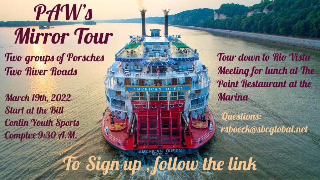 Two groups of Porsches. Two river roads.