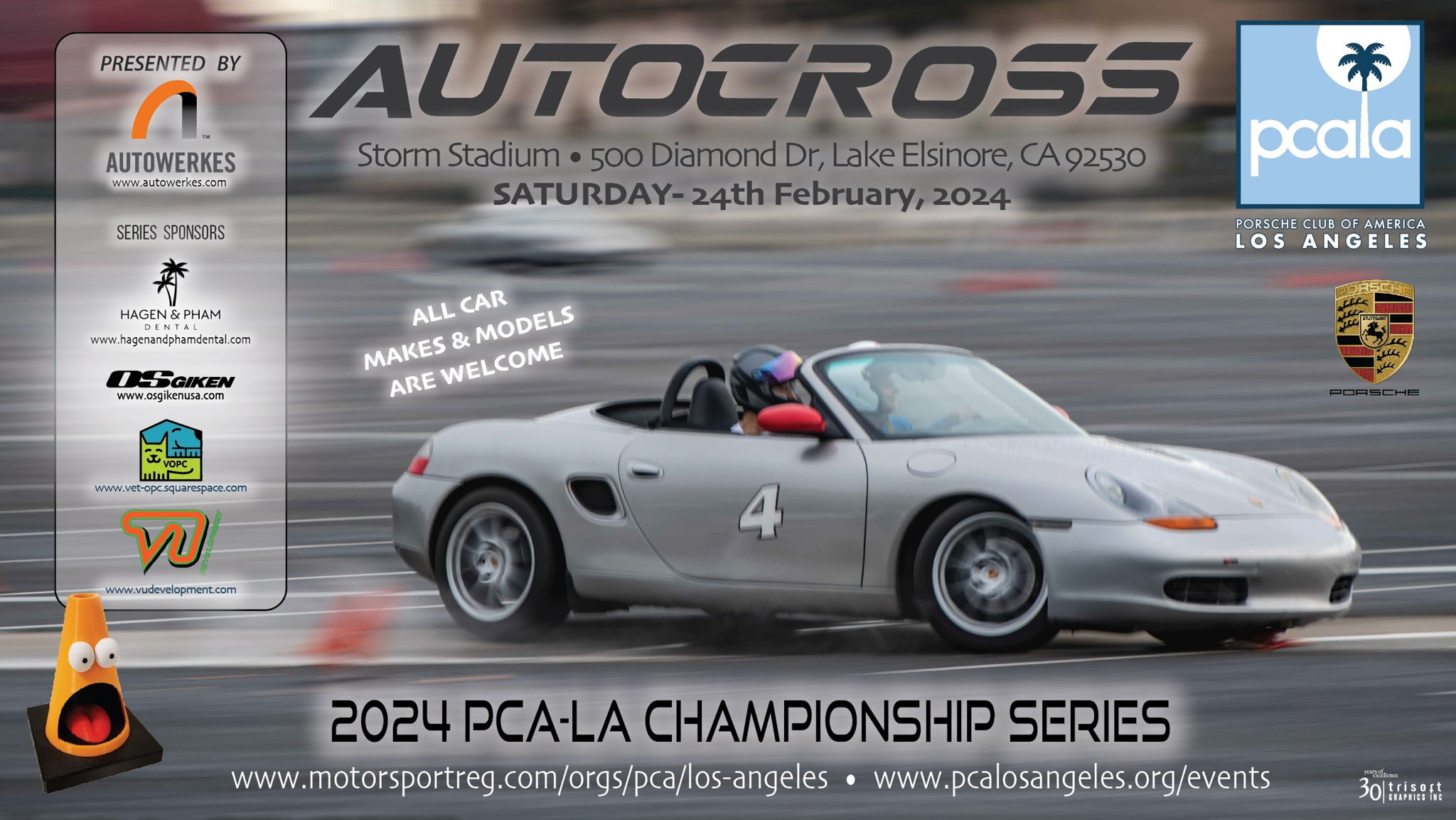 Event will be conducted according to the Autocross rules and regulations of the Porsche Club of America. Details here.