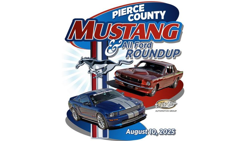 Pierce County Mustang and All Ford Roundup will be held on August 10, 2025, in Tacoma, WA. Event is 9:00 AM to 3:00 PM. For more info and to register visit www.piercecountymustangclub.com