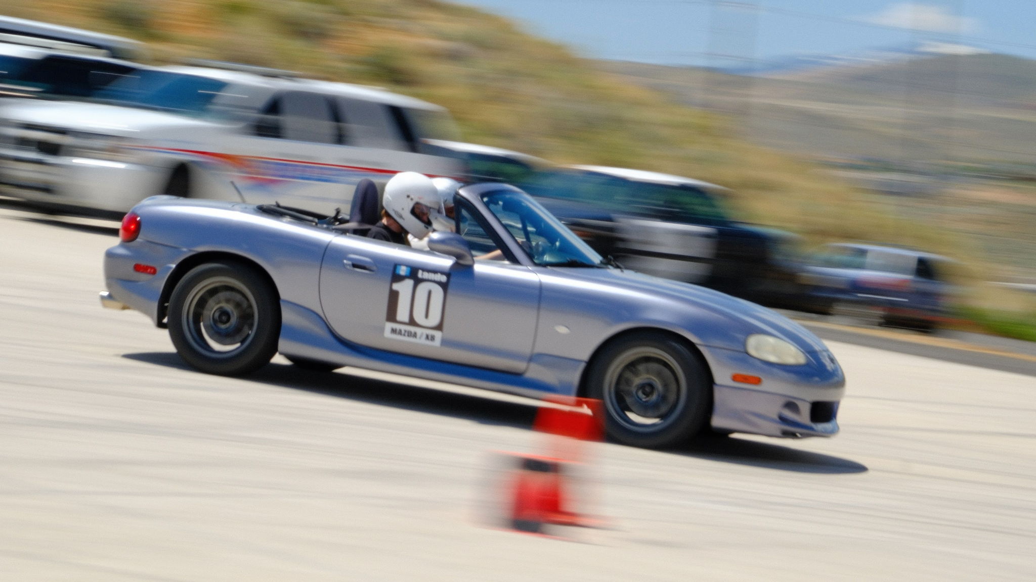 All cars must pass a basic tech inspection to ensure the safety of the driver, course workers, and others at the event. Items include, but are not limited to, secured driver's seat, seat belts, battery positive terminal covered, well-function brakes and steering, tight wheel lug nuts, and no fluid leaks. We encourage you to bring your own helmet if it is SA2010 or M2010 rating or newer. Other accepted helmet ratings are listed on the SCCA Solo website. We have a limited number of loaner helmets available on a first-come first-served basis. All drivers must wear closed-toe shoes due to safety requirements and work assignments.