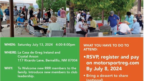 This is an event for all Roadrunners and their guests to come and meet our newest members, as well as meet with other members and the Board. There will be plenty of time to visit and enjoy the music and picnic between 4 & 8 PM. Rudy's BBQ will be providing food and drinks. BYOB and bring a dessert if you wish.
