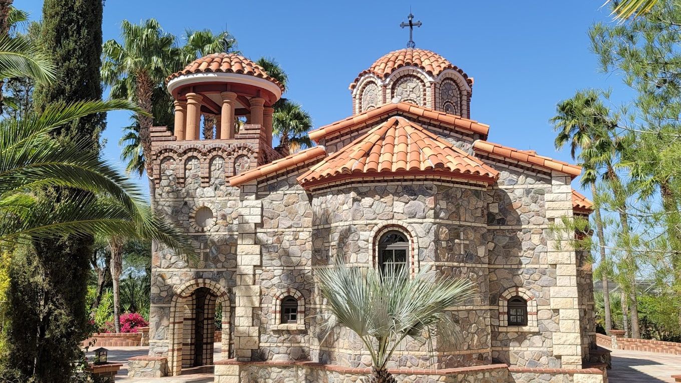 St. Anthony’s Greek Monastery is located south of Florence, AZ. , located on almost 800 acres of lush gardens, citrus, and olive groves. Founded in 1995 by Gerunda Ephraim after the purchase of desert scrubland to establish a monastery. The nine chapels, main church, refectory, and living quarters have been built into the largest Orthodox monastery in the Western Hemisphere. We will drive north for about 60 minutes, with an opportunity to walk the grounds, and visit the chapels. There is a dress code. For men, it requires long pants, socks, and a long sleeve shirt. For women, it requires long sleeve shirt, covering to the neck, long skirt, or a dress with socks. A scarf tied under the chin and covering the neck is also required.