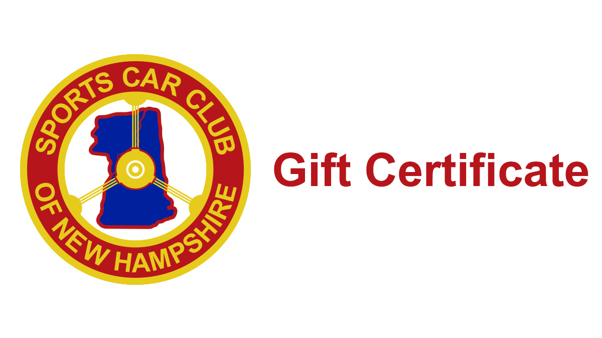 SCCNH Gift Certificates for SCCNH autocross and hillclimb events - surprise a friend or a loved one!