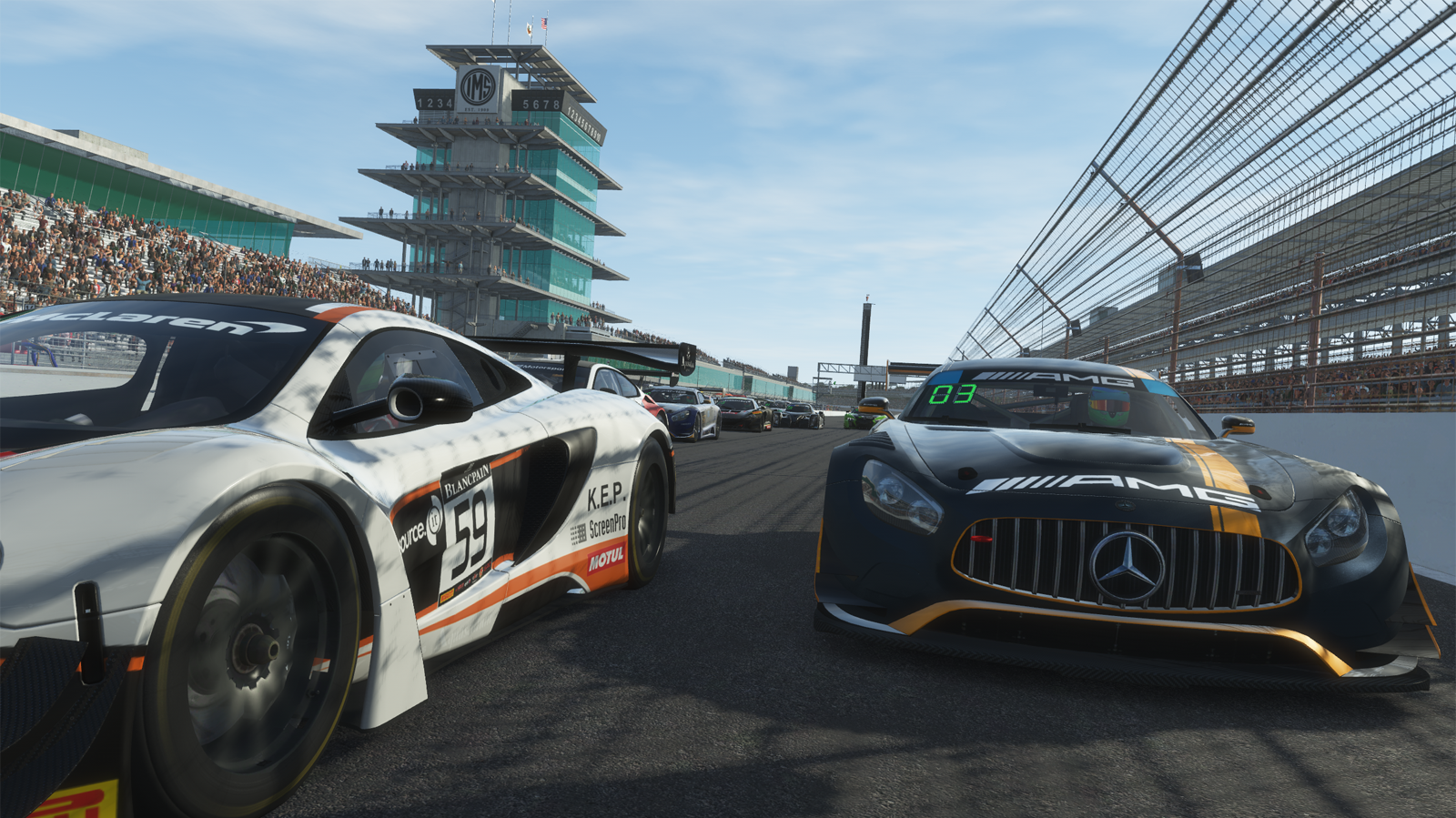 We are using the world-class GT3 Car Pack in the rFactor 2 racing simulation software for PC, available on the Steam software portal.
