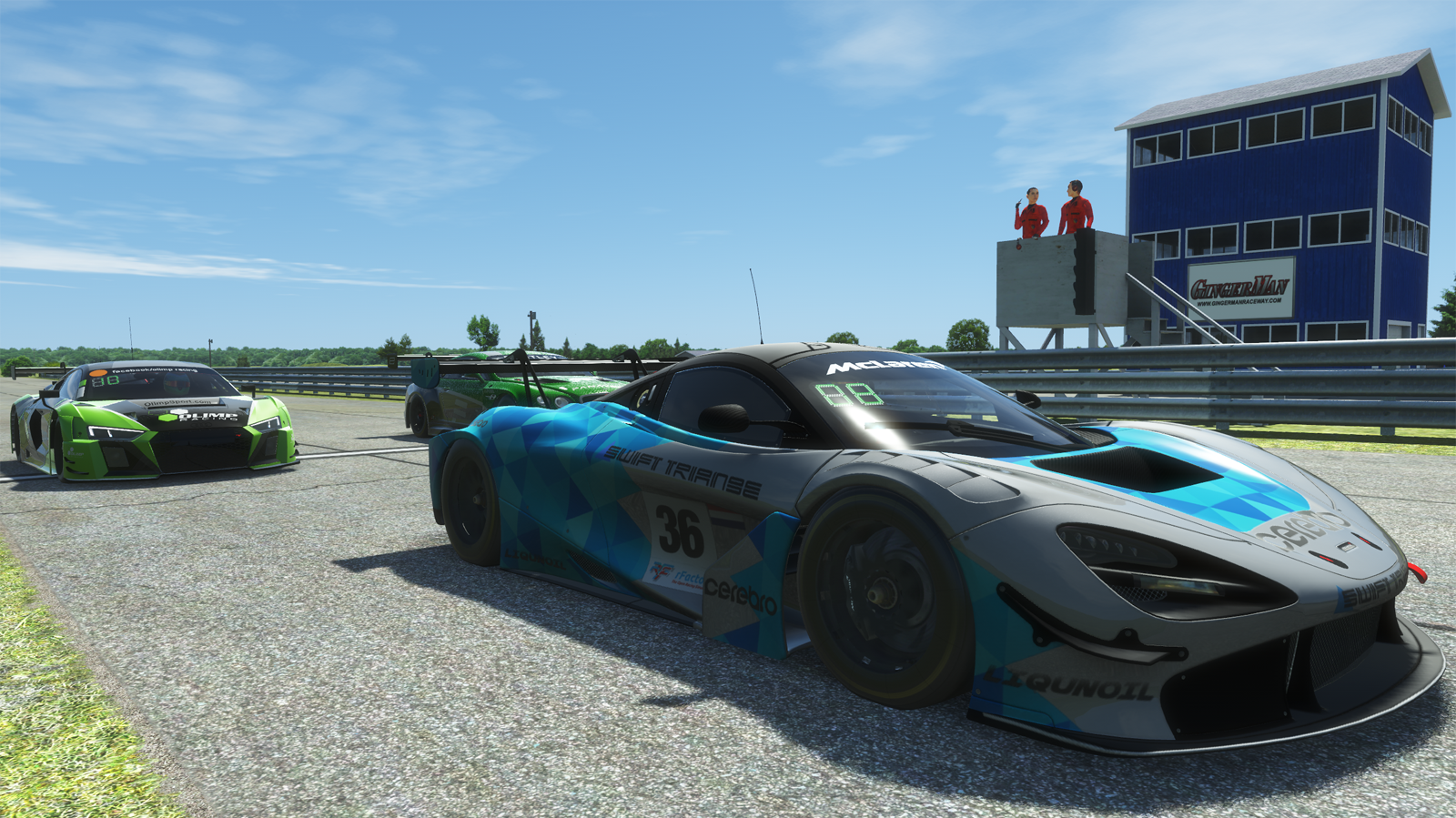 We are using the world-class GT3 Car Pack in the rFactor 2 racing simulation software for PC, available on the Steam software portal.