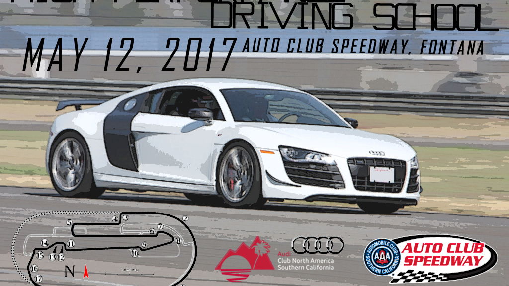 - Auto Club Speedway - Audi Club members have frequently asked us to hold a High Performance Driver school at conveniently-located Auto Club Speedway, but the high cost of renting a NASCAR facility has kept us away - until now! Audi Club has partnered with Hooked on Driving to bring you this joint event on Friday, May 12, 2017.