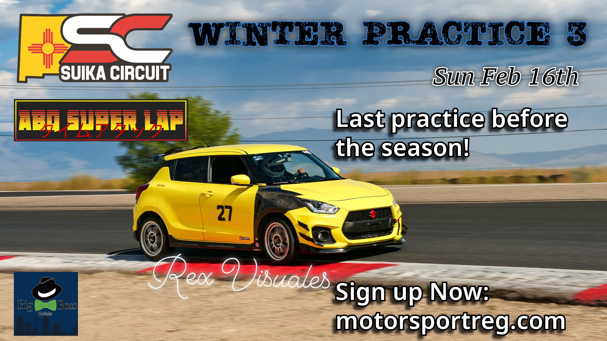 You're invited to the final Winter Practice here at Suika Circuit. This event includes some of the fastest Street & Race Cars here in the Southwest Region.