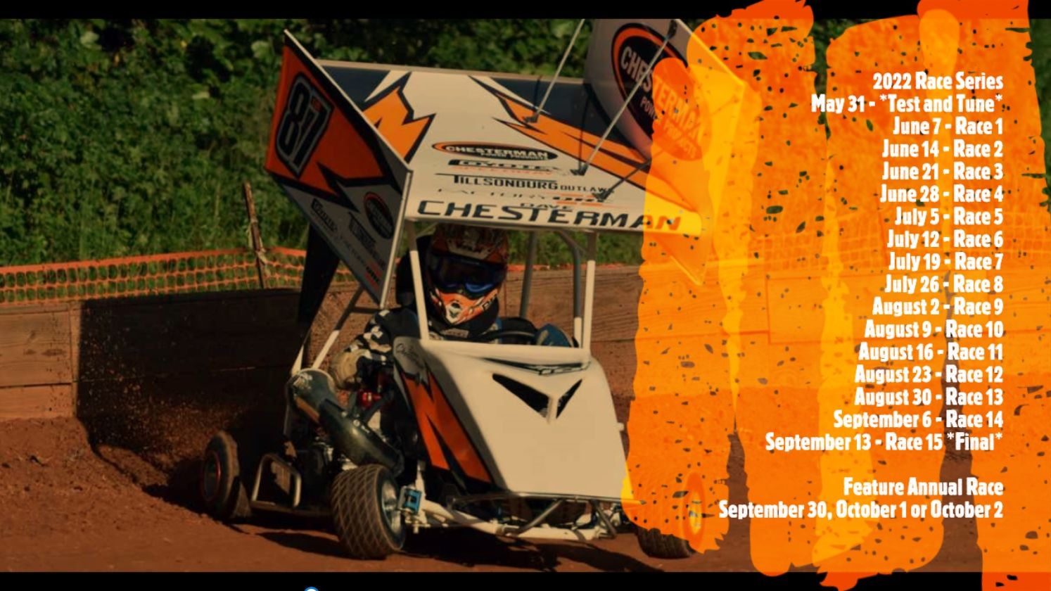 Waivers are a must for all entrants, assistants and spectators. For 2022, we will use Facebook and direct emails to keep members and friends up to date on the race action. Please email inquire@chesterman.ca to be added to the direct email list for our race updates or follow our Facebook page under Tillsonburg Outlaws. Get those Outlaw Mini Karts ready to go! Gates open at 5:30 pm and the track is ready at 6:45 pm.