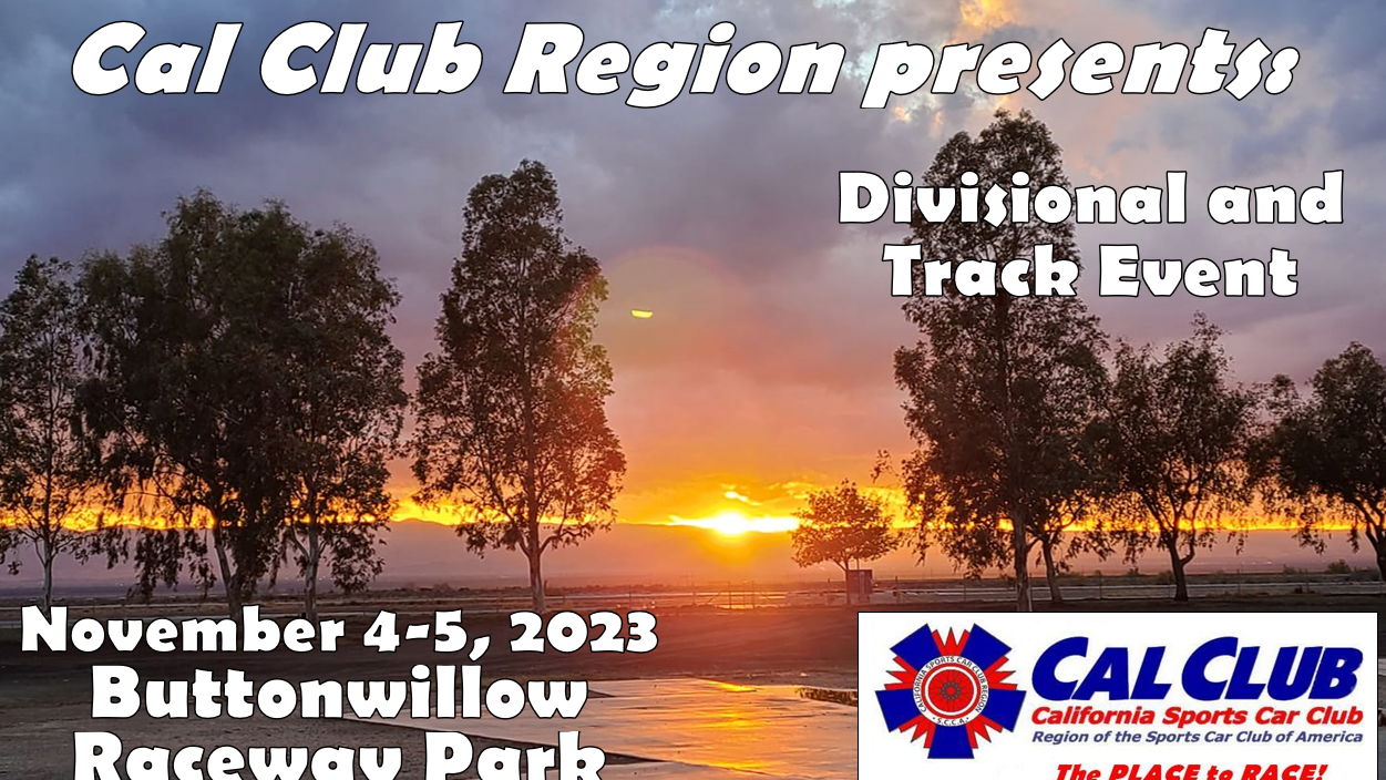 Join us at Buttonwillow on November 4-5,2023 for a fun filled 2 day event. Divisional Racing with Track Event as well!