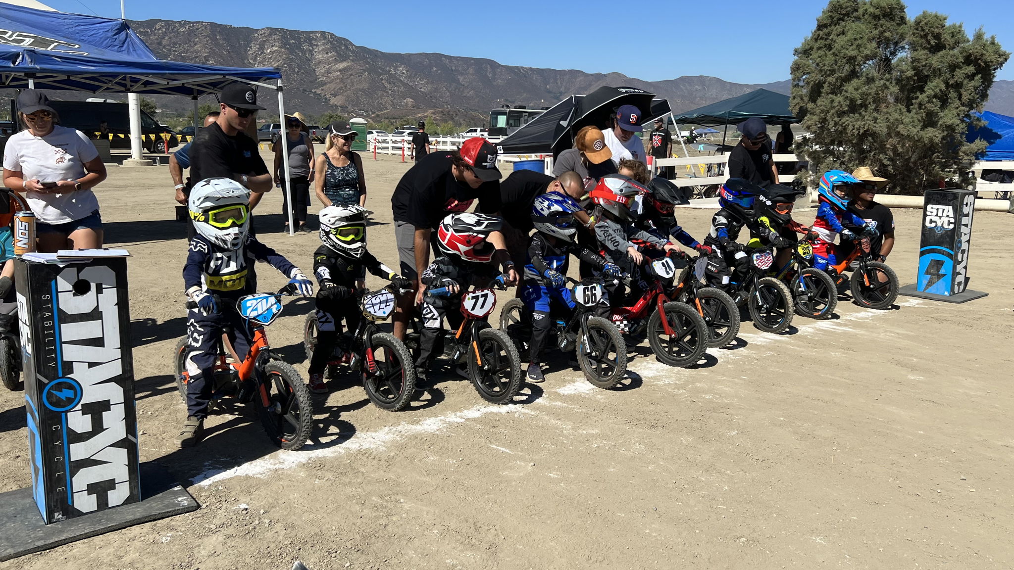 STOCK – stock drivetrain required on both 12” and 16” cycles. Brushless motor permitted on 16” stacyc only. Must use stock sprocket 12” (9 tooth) 16” (10 tooth). Must use Stacyc battery.  All Stacyc must have an operating brake system.  MAX PERMITTED RPM AT REAR WHEEL IS 360 RPM BIKE OVER 360 WILL BE DISQUALIFIED.