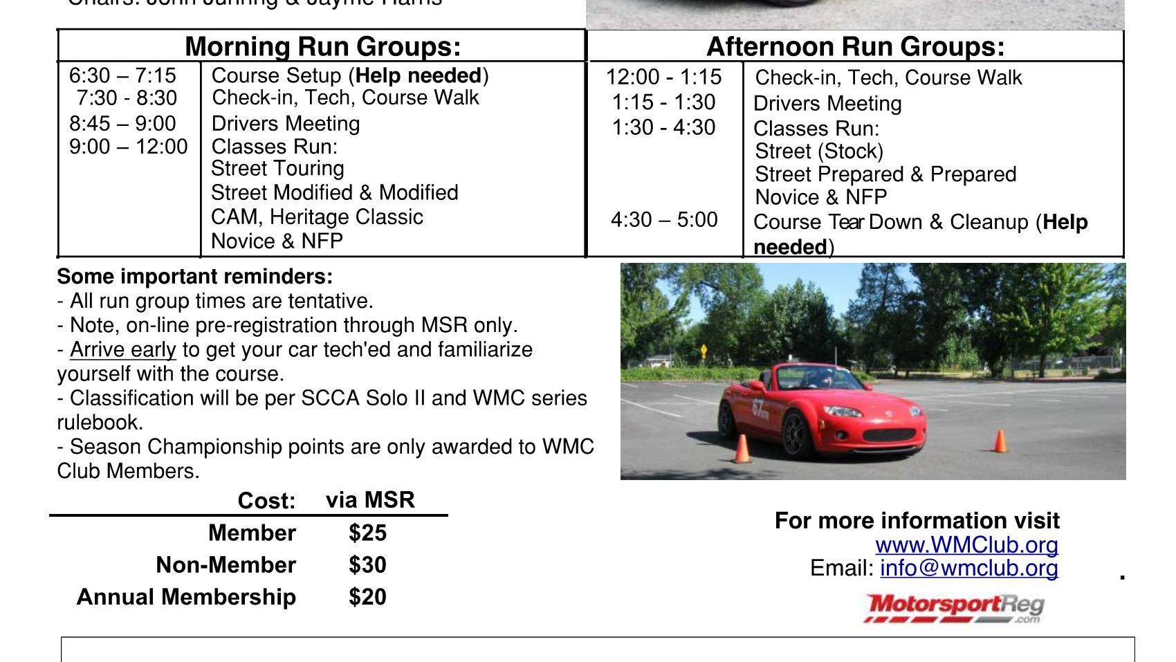 Please fill out all the pages of your MSR registration, we are planning on using this for autocross, hillclimb and other functions. make sure your email is kept current as you will not be spammed, but all future WMC event information will be emailed to any who have us on thier club list.